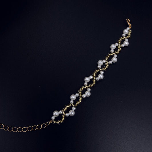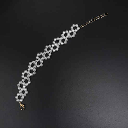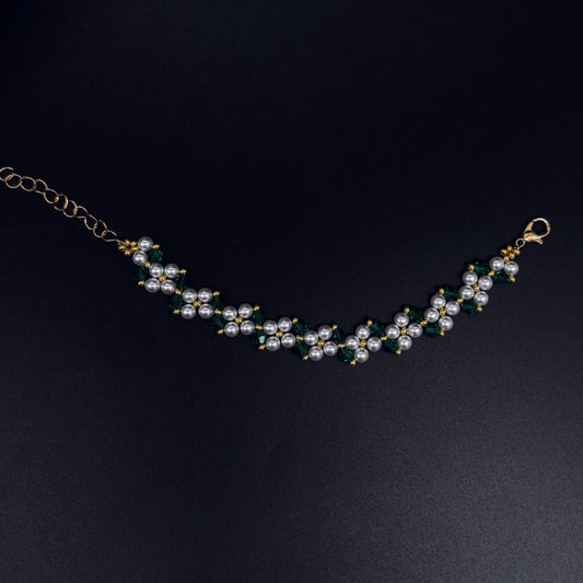 Handcrafted Pearl and Crystal Bracelet with Intricate Beadwork