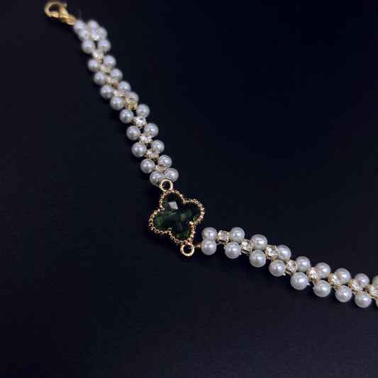 Exquisite Handcrafted Beaded Bracelet with Crystal and Pearl Accents