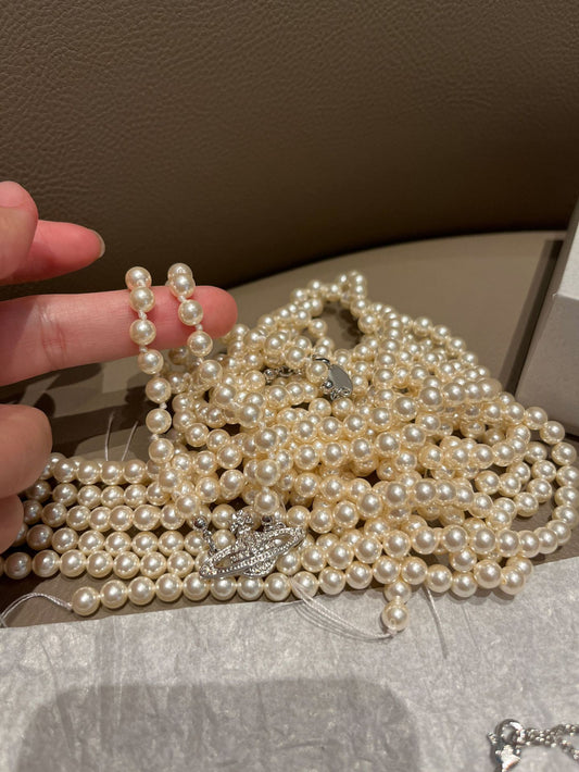 Stunning Crystal-Encrusted Orb Pendant Necklace with Pearl Chain