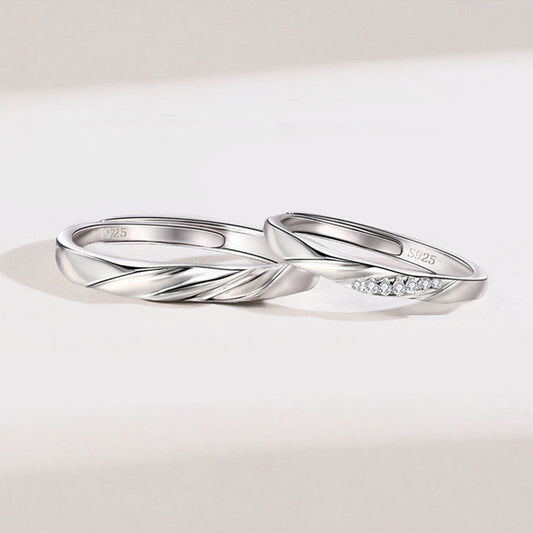 Mobius 925 Silver Cubic Zirconia Adjustable Promise Ring Couples Ring