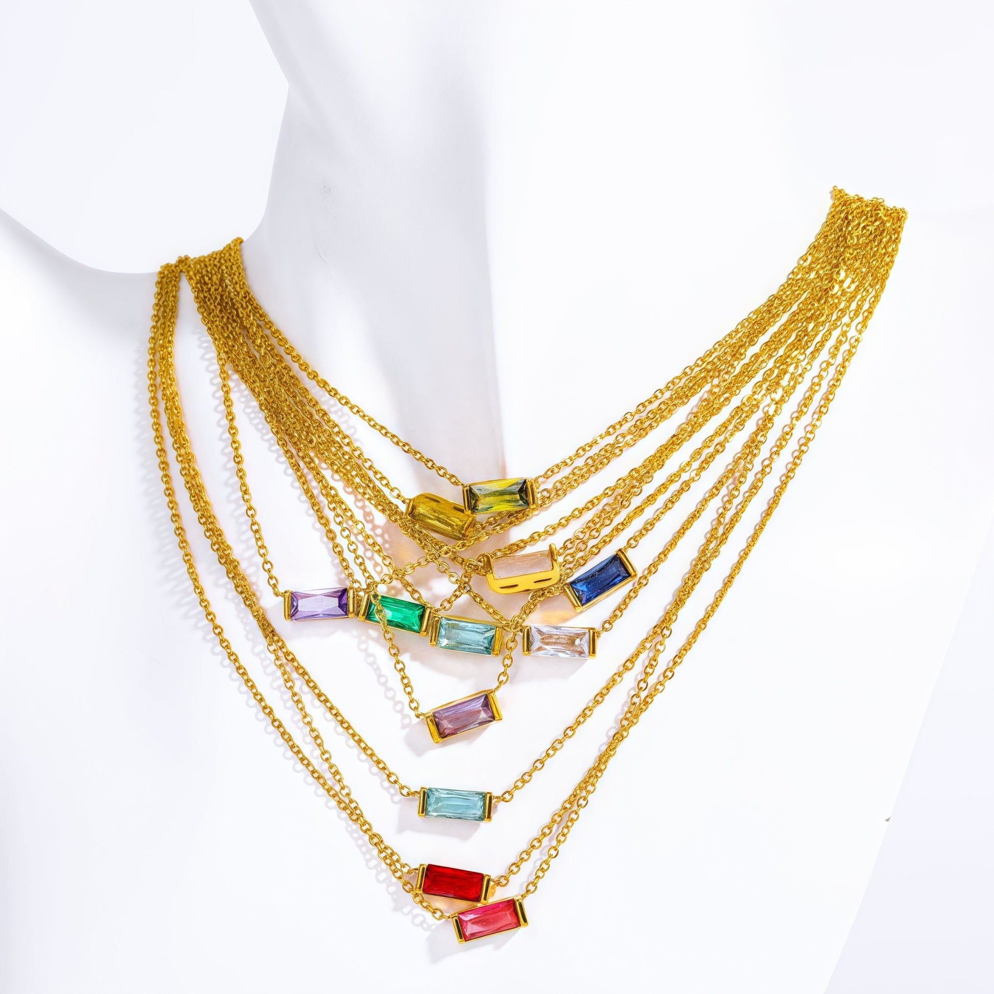 - Colorful Zircon Stones: Each strand is embellished with a rectangular zircon stone in a different color, representing the birthstones of each month.
