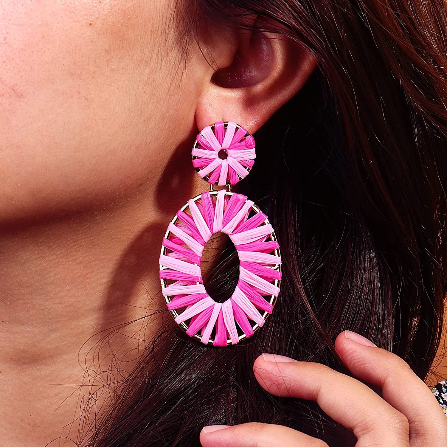 Ellipse Resort Earrings Bohemian Travel Drop Dangle Rattan Earrings