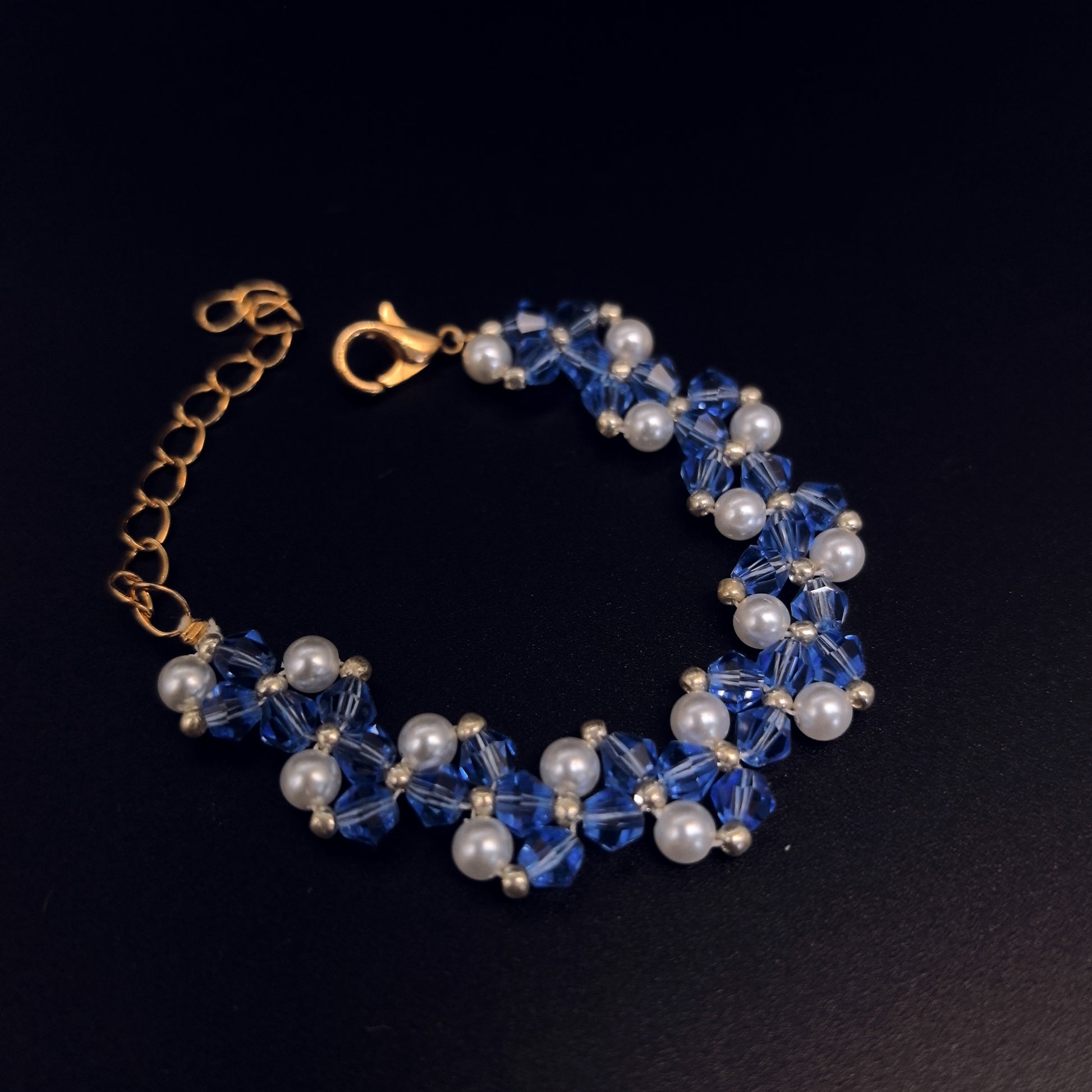 - Beads: High-quality blue crystal beads and white faux pearls.