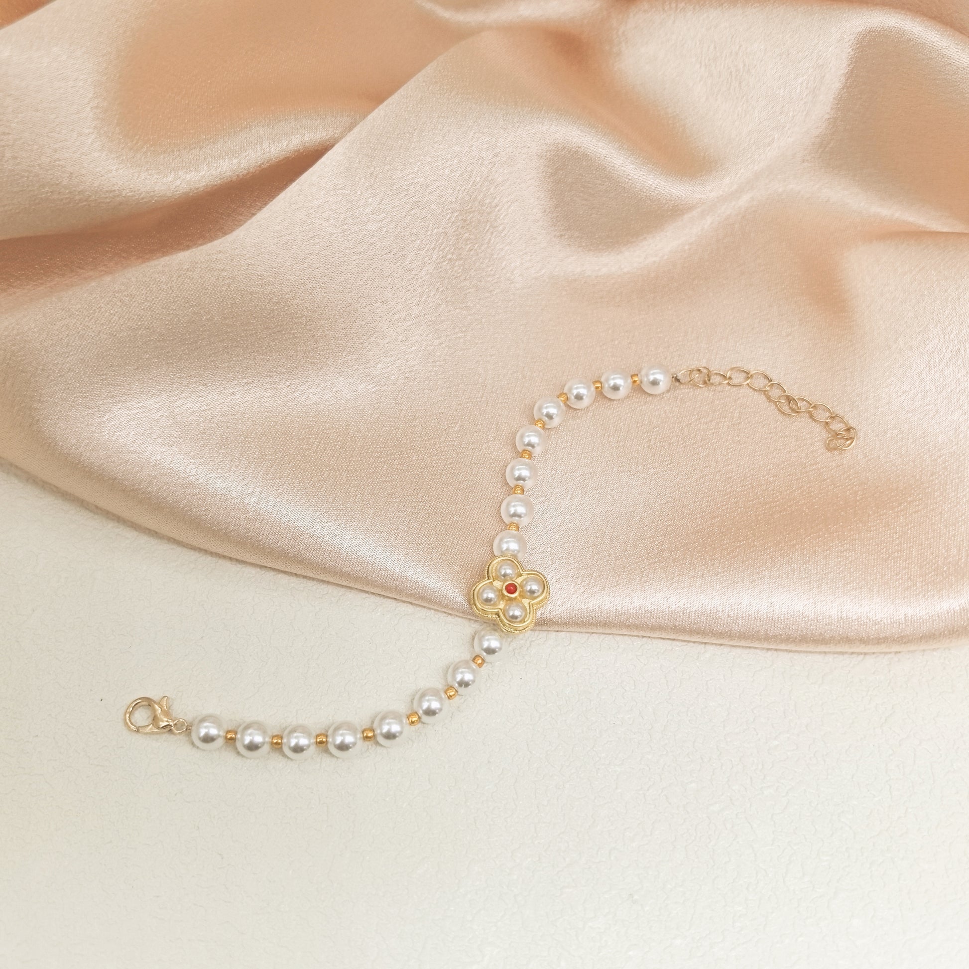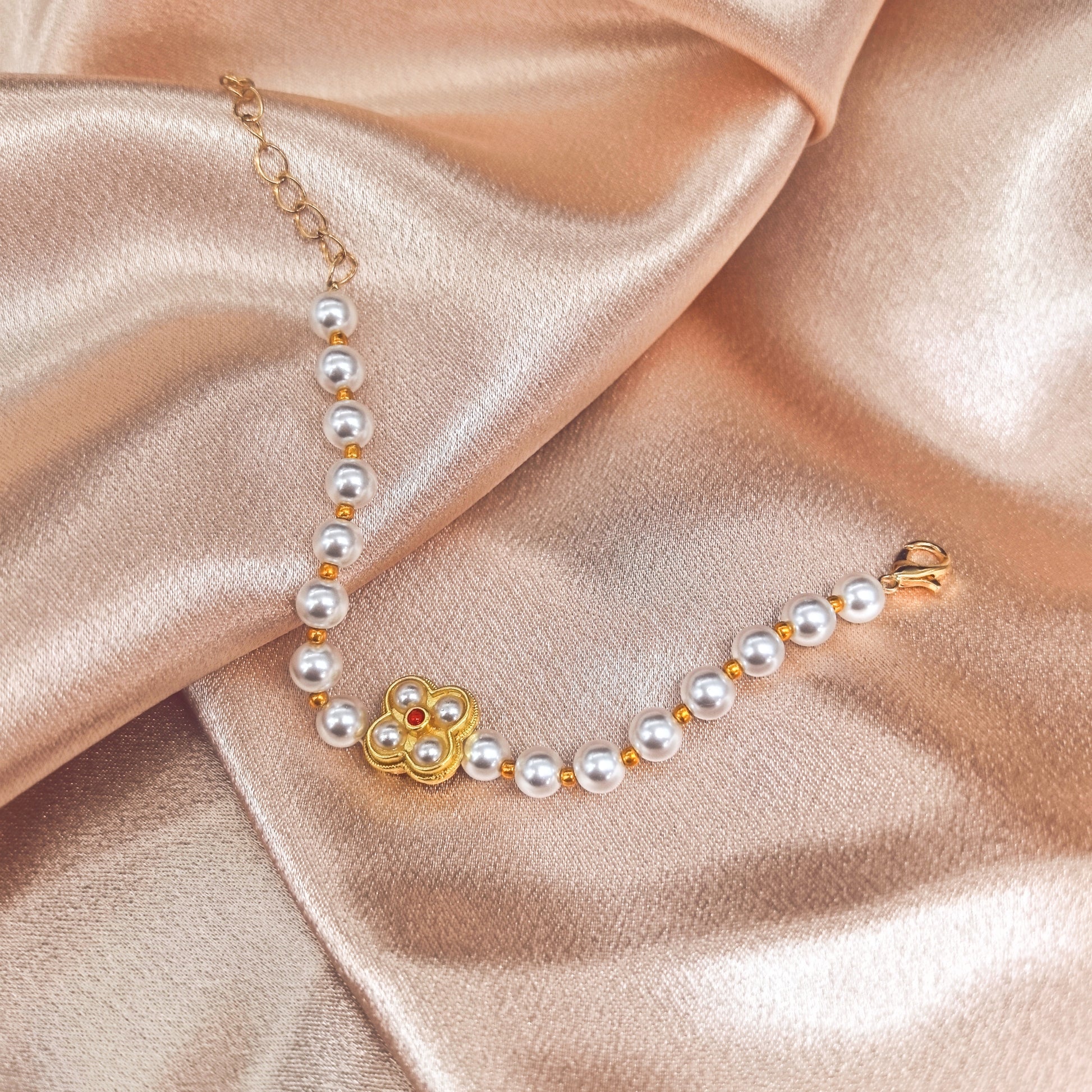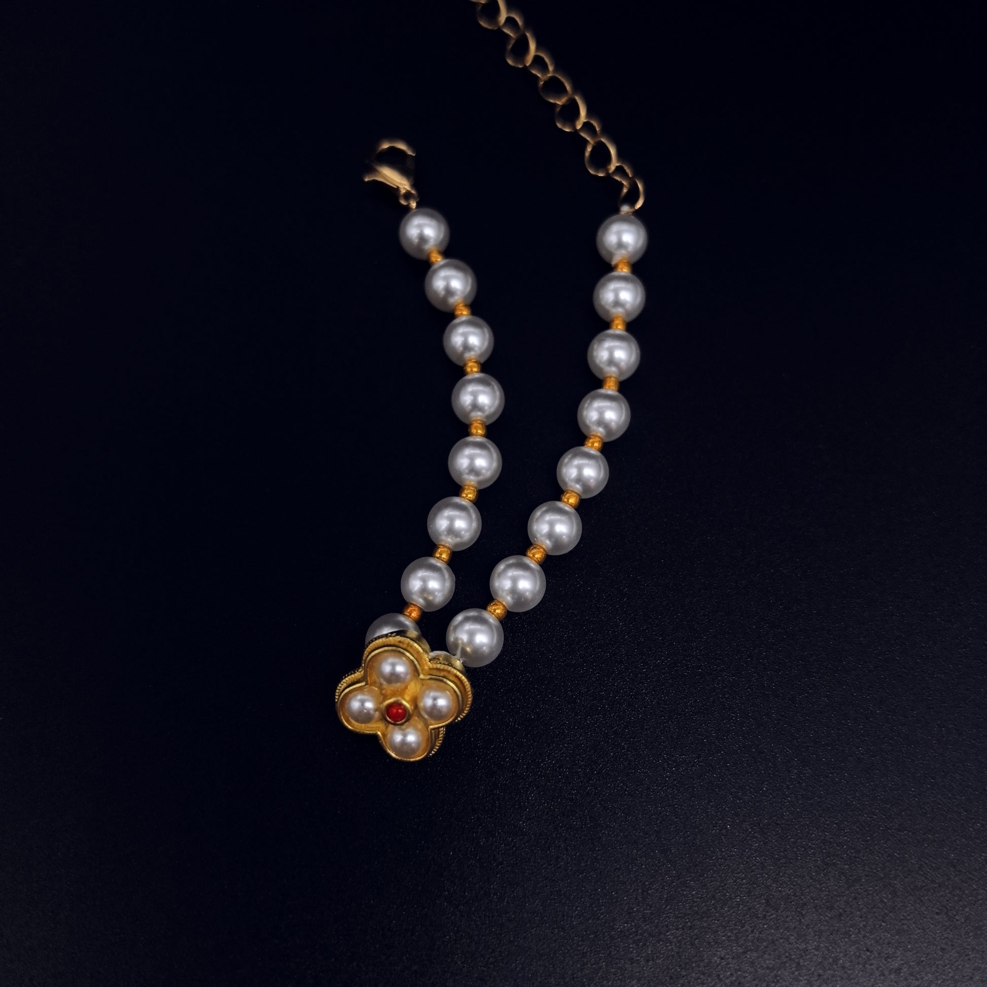 Handcrafted Pearl Bracelet with Gold Flower Pendant