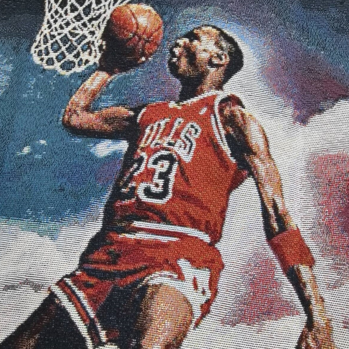 A legendary dunk, captured in woven form.