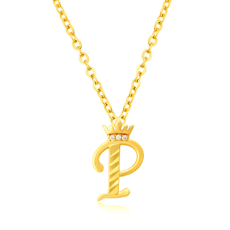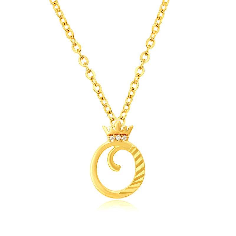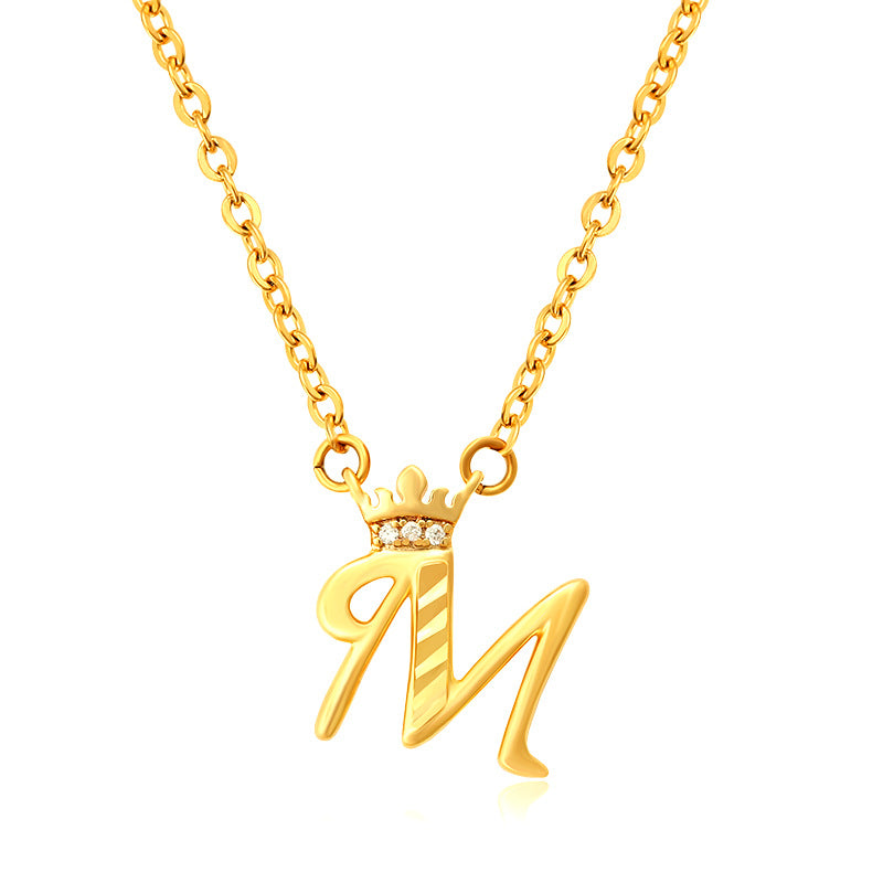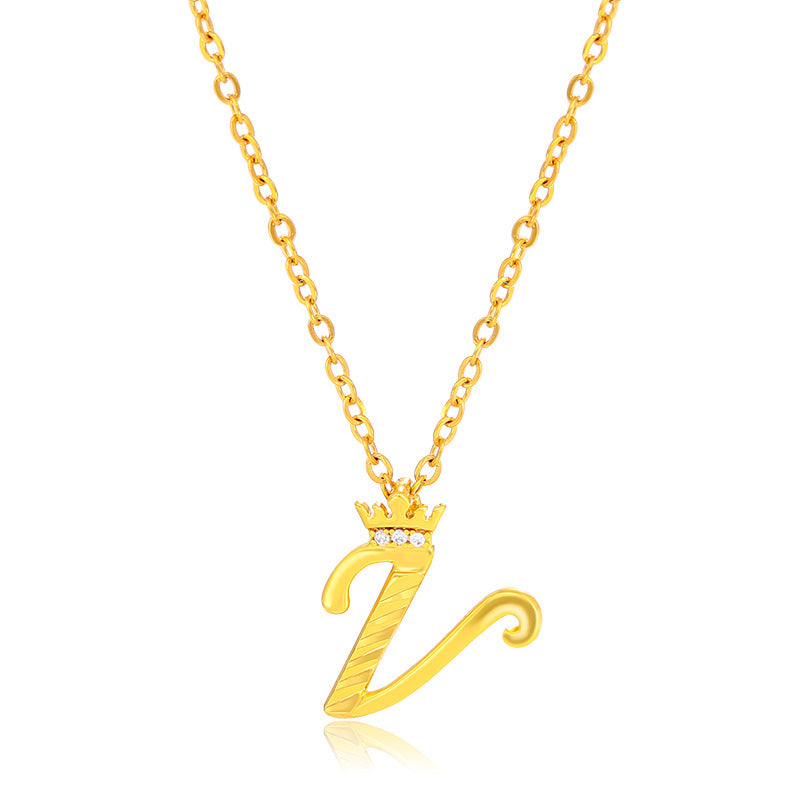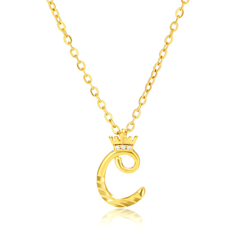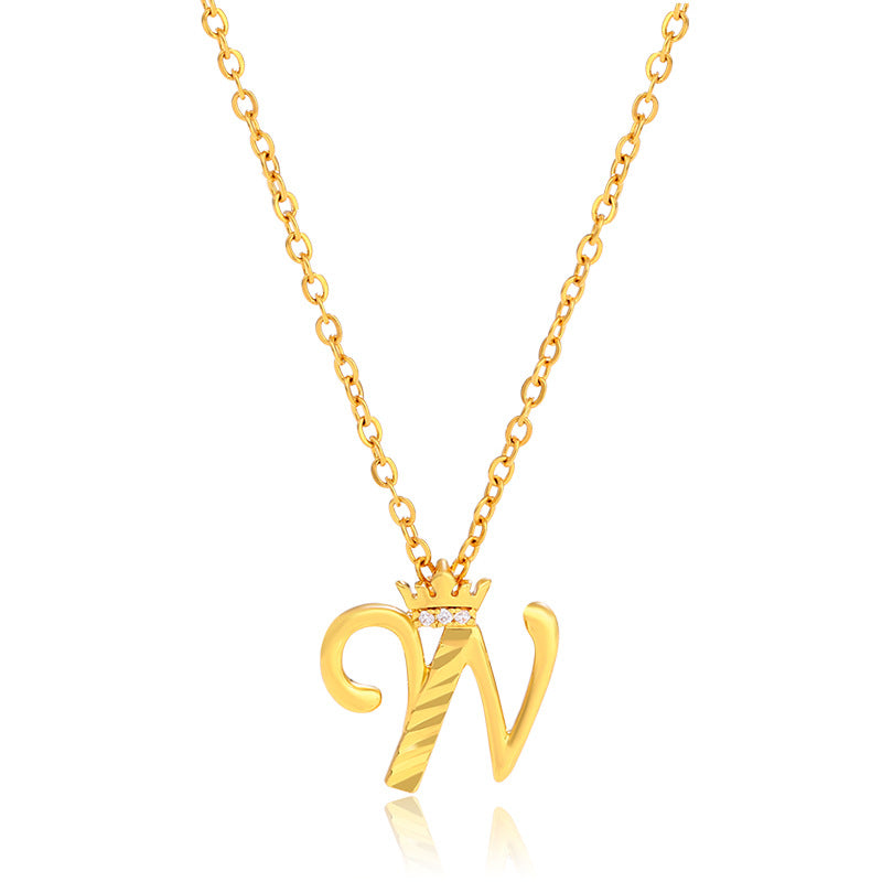 Initial Script A-Z Letter Crown Pendant Necklace 18K Gold Plated Cubic Zirconia Necklace