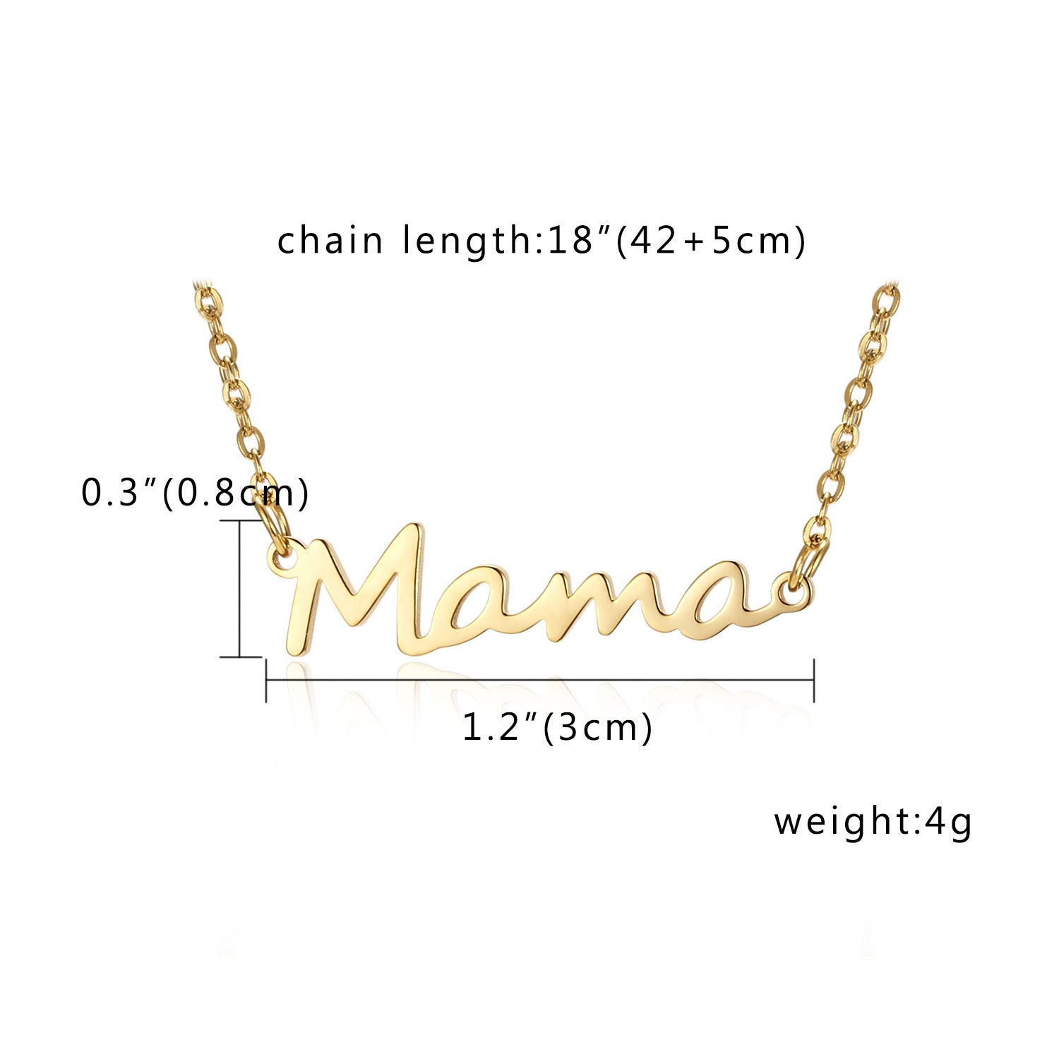 Celebrate the special bond between a mother and her children with our exquisite Mother's Day Minimalist Necklace. This delicate piece is crafted from high-quality gold-plated stainless steel, ensuring both beauty and durability. The necklace features the word "Mama" in a charming cursive script, making it a heartfelt gift that MAMA will treasure forever.