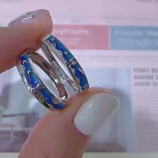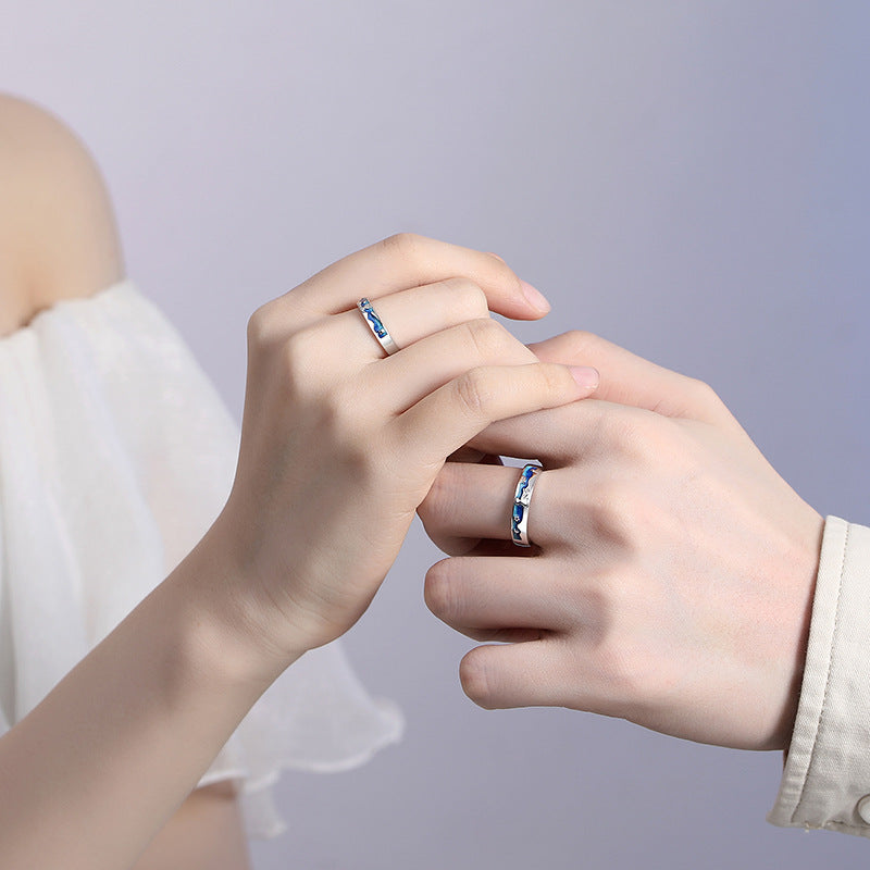 The Little Prince and Fox S925 Sterling Silver Couple Finger Ring Enamel
